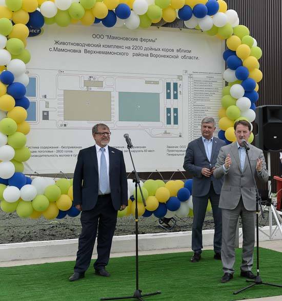 Затем Алексей Гордеев и Александр Гусев переехали в Верхнемамонский муниципальный район области. Здесь, в селе Мамоновка, состоялось тожественное открытие молочного комплекса компании «Молвест». Ферма рассчитана на 2200 дойных коров высокопродуктивных пород джерси, которые дают молоко, идеальное по своим характеристикам для производства сыра высокой жирности (в среднем оно содержит 6,3% жира) и с высоким содержанием молочного белка . При выходе на проектную мощность (конец 2018 года) комплекс будет производить 74 тонны молока в день. Сейчас на ферме 1200 голов. На ферме применён новый промышленный тип содержания крупного рогатого скота, по канадской технологии. Коровы будут находиться под одной крышей в здании длиной 200 метров и шириной 125 метров. В России это первое подобное сооружение. На молочном комплексе создано восемьдесят рабочих мест.