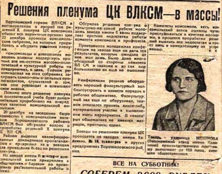 17-23 февраля 1936 г. – проходила Первая областная конференция ВЛКСМ Воронежской области.