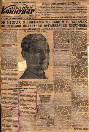 Начавшиеся в стране репрессии не обошли стороной и Воронежскую областную комсомольскую организацию. По ложным доносам, по сфабрикованным обвинениям были арестованы, отправлены в тюрьмы и расстреляны десятки и сотни комсомольских активистов.