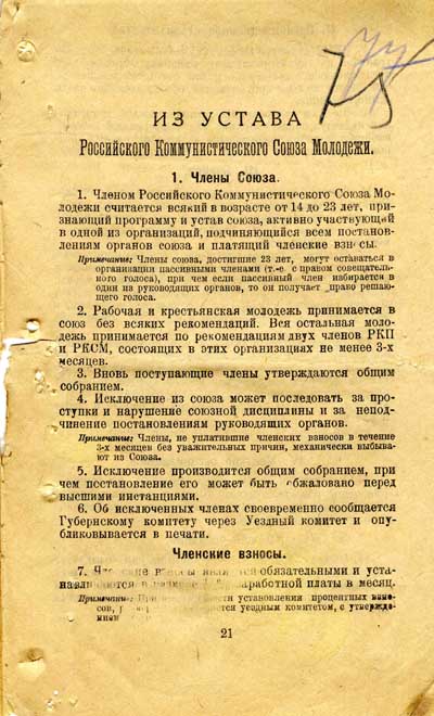 Из статьи «О работе среди молодежи» из газеты «Комсомолец».
