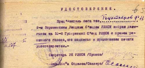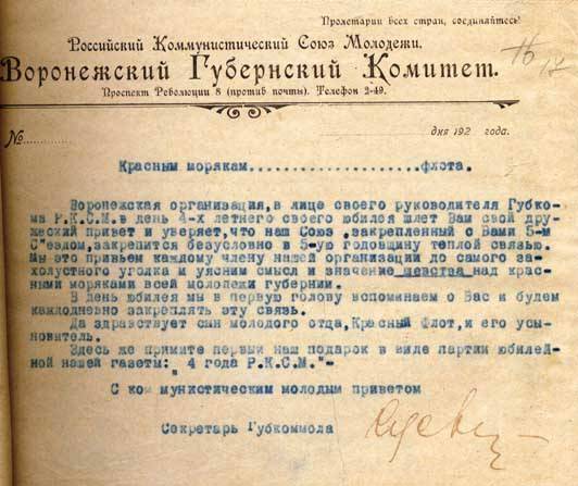 Из сборника документов «Комсомол Воронежской области в годы гражданской войны и восстановления народного хозяйства. 1918-1925г.».