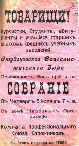 В этом же деле мы находим листовку этой группы, призывающей учащихся города присоединиться к декабрьской политической забастовке. Вот строки из неё: «Товарищи! Докажите ещё раз своё сочувствие и готовность и готовность поддерживать пролетариат в его борьбе за лучшее будущее, объявив совместно с ним политическую забастовку»..
