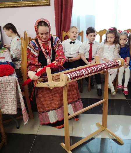 мастерством Аксана Вадимовна управляется с ткацким станком.