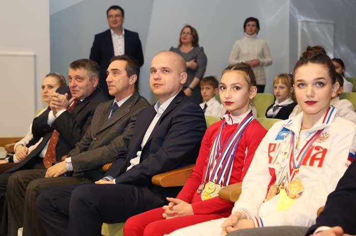 С показательными выступлениями перед учащимися, педагогами и гостями праздника выступили Алина Барсукова (фигурное катание), Ксения Сидельникова и Елена Кабина (спортивная акробатика).