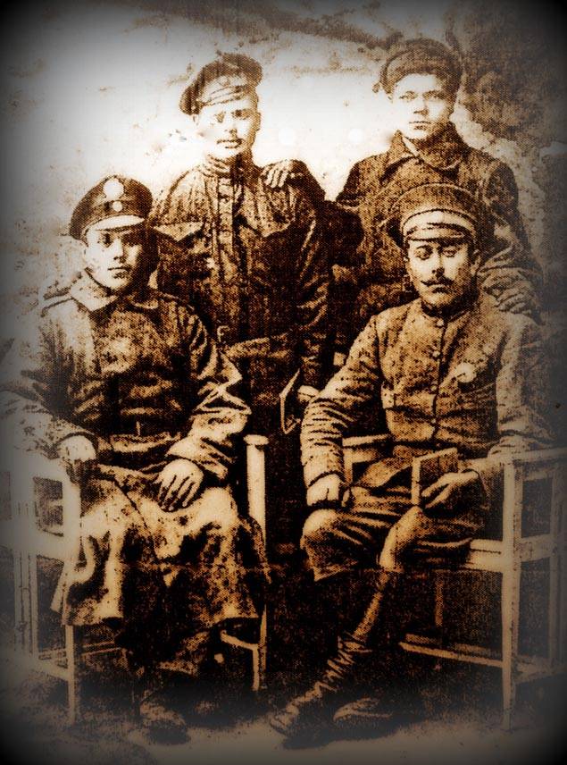 Иван дослужился до унтер-офицерского звания, но, как и брат Александр, тоже был в плену. Лагерь располагался в венгерском городе Дебрецен. Надо заметить, что в те времена с пленными обращались не совсем так, как в годы Второй мировой. Конечно, и работой изнуряли, и кормили не кундюбами, но, при всём ужасе рабского положения, за послушание имелись и некоторые поблажки – книги, кружки, самодеятельные театральные спектакли и концерты, выставки поделок, лагерные газеты, игра в шахматы и прочее виды досуга. Можно было, в порядке особого исключения, получить увольнение в город. Видимо, унтеру Ивану Шмунку и трём его русским товарищам по неволе удалось заработать увольнительные и сфотографироваться.