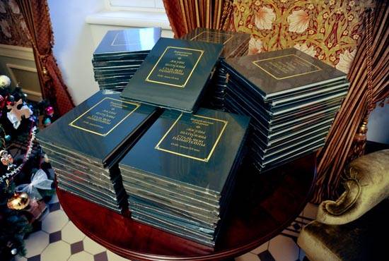 Становлюсь в очередь и я, так как приехала только утром. Передо мной два журналиста из Турции суматошно достают из сумки все свои документы – паспорта с визами, редакционные удостоверения, ещё какие-то свидетельства. На них долго смотрят, проверяют все бумаги. Очередь немного затягивается. Когда с ними закончили, я протягиваю свой паспорт и удостоверение. Мои документы изучают менее тщательно, быстро находят бейдж, и как остальным вручают войлочную папку, на которой тиснеными буквами выбито «2017 Пресс-конференция Президента РФ Владимира Путина». В папке блокнот, ручка, календарь на следующий год.