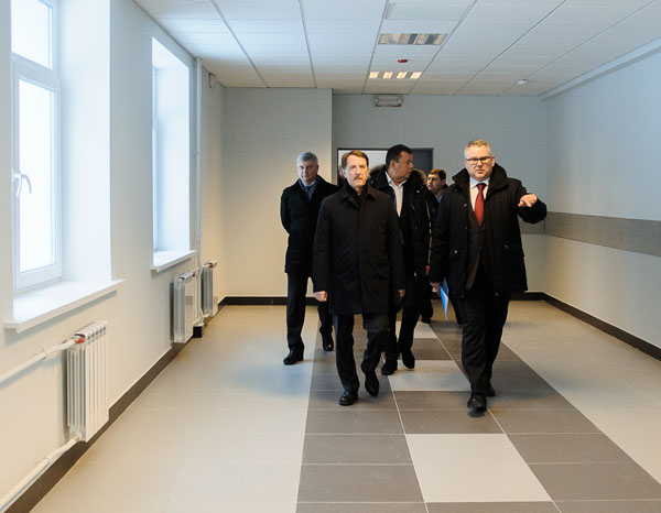 В ходе осмотра объекта губернатор посетил актовый зал, столовую, спортивные залы, а также учебные классы. Строители вносят последние штрихи в отделку помещений, вешают школьные доски, устанавливают технологическое оборудование. Полностью завершено строительство всех трех корпусов здания, котельной и трансформаторной подстанции. Ведутся работы по устройству автоматической охранно-пожарной сигнализации и системы охранного телевидения.