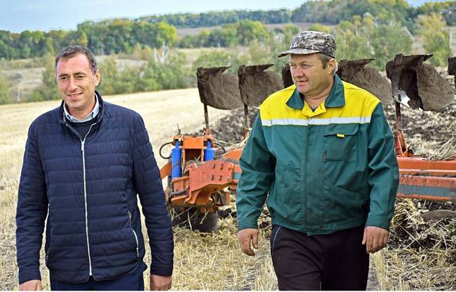 Алексей Бочаров и механизатор Алексей Наумов. Фото Михаила Вязового.