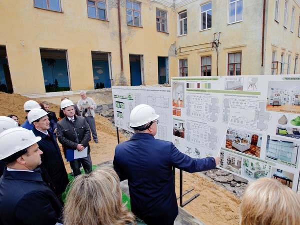 Фактически от старого здания останутся только стены – на объекте ведется демонтаж кровли, разборка полов и потолков, полным ходом идут земляные работы по обустройству котлована пристройки. Проектом реконструкции предусмотрены перепланировка, отделка, замена полов, оконных и дверных блоков, а также конструкций кровли и инженерных сетей. Кроме того, запланированы строительство котельной, установка трансформаторной подстанции, монтаж водопроводной насосной станции пожаротушения.
