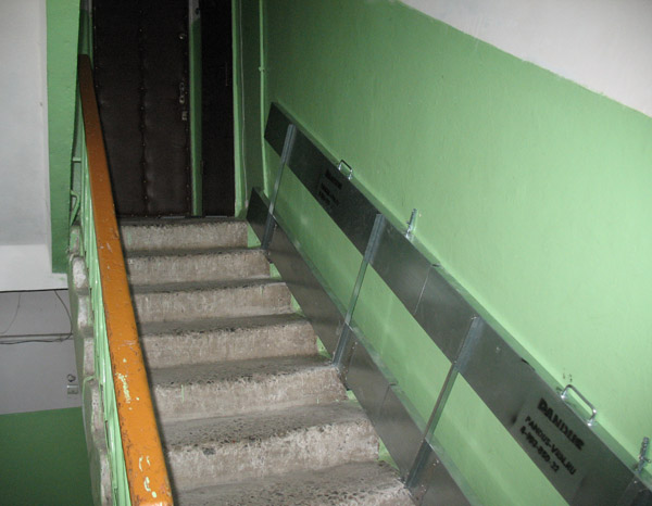 И это немудрено: пятиэтажка 1962 года постройки попросту не предназначена под установку дополнительных элементов на лестничных маршах.