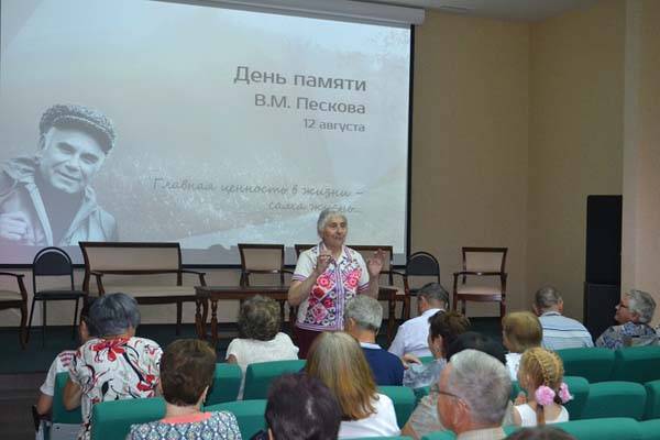 Во второй части Дня памяти заведующая музеем Пескова Воронежского государственного заповедника Наталья Хлызова представила материалы по родословной Василия Михайловича, составленной коллективом исследователей родословных СВРТ (Союз возрождения родословных традиций) из Воронежа и Москвы. Первая часть фильма «Страницы семейного альбома В.М.Пескова» посвящена деду родоначальника экологической журналистики России -– Павлу Константиновичу Волохину, который был героем Первой мировой войны, полным Георгиевским кавалером, и родителям – Михаилу Семеновичу и Татьяне Павловне Песковым.