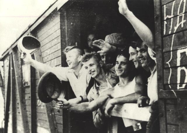 Комсомольцы, получившие путёвку на освоение целины в Алтайский край.