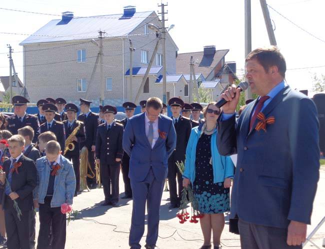 Председатель местного Совета ветеранов Петр Галкин сказал, обращаясь к собравшимся:«Очень рад, что вы отмечаете этот великий праздник — День Победы. Она далась нам очень тяжело, и мы помним всех, кто покоится в братских могилах, и тех, кто ушёл из жизни за последние годы».