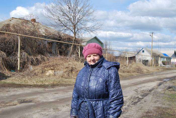 За её спиной – место, где стояла хатенка семьи Кобелевых.