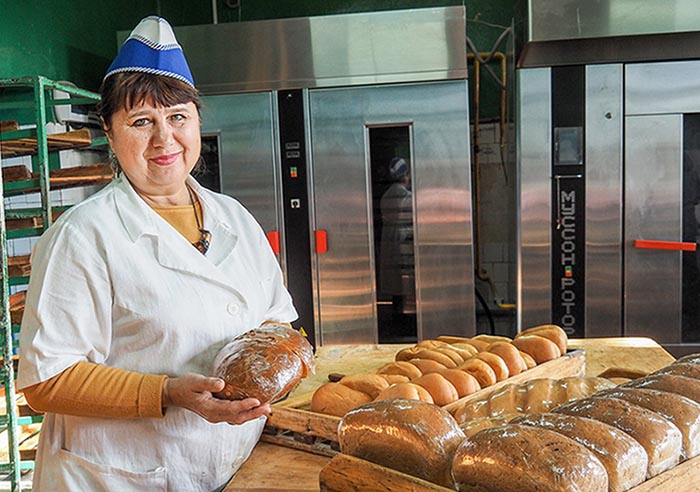 – Если рутинно работать, вкусного хлеба не получишь, – говорит Наталья Утешева. – Этот труд требует от пекаря постоянного напряжения сил и творчества, тогда и продукция выходит хорошая. Ассортимент у нас довольно большой. Все наши хлеба опарные, стоят по 4-5 часов. Мы выпекаем хлеб Дарницкий, заварной, пшеничный, тыквенный, луковый, хлеб с добавлением пшеничных и ржаных отрубей, батоны классические, нарезные, сдобные, плетёнки с маком, изюмом, кунжутом. Селяне очень любят пшеничный хлеб первого сорта. Тыквенный предпочитают в сёлах Новогольская и Новомакарово. Поначалу смотрели с недоверием на его характерный жёлтый цвет, спрашивали: «Краситель?». «Нет, – отвечаю, – это хлеб с добавлением тыквы, которая выращена на собственном огороде. Этот рецепт нам порекомендовала старшая медсестра в санатории имени Цюрупы. Там этот хлеб используют в лечебных целях». Большим спросом у нас пользуются также разные пирожки: с капустой, яблоком, картофелем, повидлом, творогом, ливером, рисом, маком, с зелёным луком и яйцом.