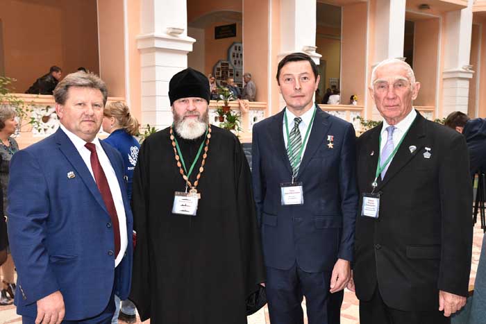 Море и космос, Родина, духовность, патриотизм – вот те понятия, которые в этот день звучали с особым смыслом. Ректор Воронежского ГАУ Николай Бухтояров, иерей Сергей Бовшик, космонавт-исследователь, Герой России Сергей Ревин, основатель космической династии Александр Скворцов. Фото Алексея Петрова.
