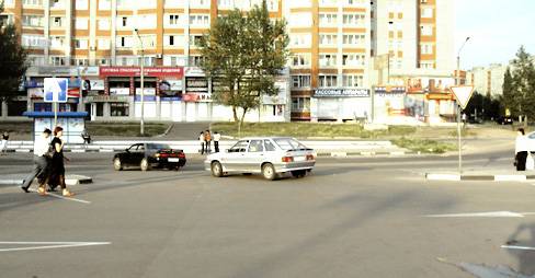 В левой части кадра виден знак «Дорога с односторонним движением». Такие знаки устанавливаются в начале дорог с односторонним движением (правда, справа по ходу движения водителя). Самое непонятное – где же там дорога «с односторонним движением»? На горизонте – остановка общественного транспорта и жилой дом!