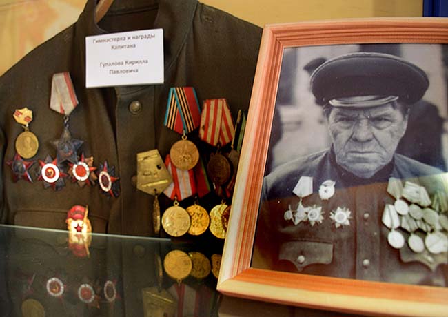 Особая гордость музея – фронтовая землянка. Попадаешь в нее – и сразу проникаешься огненным дыханием тех лет. Дымит, пытаясь загореться, полено в маленькой печурке, трещит командирский телефон, на стене – портрет Сталина и знаменитый плакат «Родина-мать зовёт!». В углу – видавшая виды гармонь. Но сейчас, на передовой, важнее вот этот автомат и вот эти гранаты. Поистине: «До тебя мне дойти нелегко, а до смерти четыре шага»...