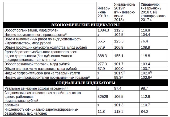 Экономическое положение Воронежской области за первое полугодие 2019 года характеризовалось следующими показателями: