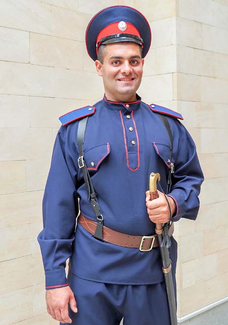 Действительно, у директора Дома культуры №1 в селе Пески Юрия Шамина колоритная внешность. Полный порядок у него и с биографией. В армейские годы коснулся его Афган, а сегодня он атаман станицы Песковской.