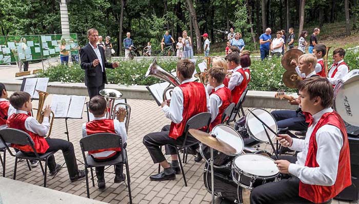 Роман Сурков и его духовой оркестр . Фото Натальи КОНЬШИНОЙ.