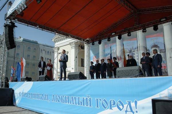 – Я хочу сегодня сказать спасибо каждому воронежцу, который принимает активное участие в созидательных процессах, который улучшает жизнь и улучшает атмосферу нашего города, участвуя в различных общественных мероприятиях, и прежде всего в субботниках, которые мы проводим с вами и весной, и осенью. Спасибо вам, воронежцы! Благодаря вам у нас такой красивый город. Ведущие предложили открыть праздник. Но как можно открыть праздник? Он либо есть в душе, либо его нет. А мы сегодня чувствуем, что у нас есть праздник, и еще такое вот солнечное-солнечное настроение не только у погоды, но и у каждого в душе. Здоровья, счастья, благополучия! С праздником, любимый город! – поздравил Алексей Гордеев.