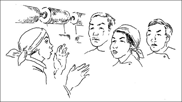 Когда у неё вычитают три копейки из пятнадцати за неровно обметанную петлю, у неё потухает лицо, она прячет в узелок выплаченные двенадцать и боится, что заказчица не принесет ей следующую рубашку.