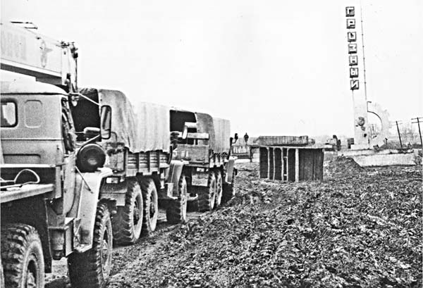 …Взорванный мост на въезде в Грозный пока еще не восстановлен, дорога идет в объезд. Когда мы возвращались, над перевалом, как и утром, висел туман. Город не просматривался. Лишь в некоторых местах проступало зарево: горит газ на поврежденных участках газопровода. Из города с нами уходили тягачи«ураганы», вывозившие подбитую технику. На некоторых участках дороги они садились на брюхо. Мы несколько раз останавливались, пропуская встречные воинские колонны. Одну остановку сделали у подбитого танка, ржавеющего здесь, говорят, еще со времени ноябрьского штурма. А неподалеку обломки сгоревшего в январе вместе с экипажем вертолета.