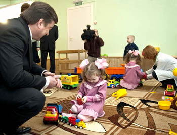 Губернатор посмотрел, как организованы спальные места в детсаду, помещения, где дети обедают и играют, а также пообщался с воспитателями и малышами.