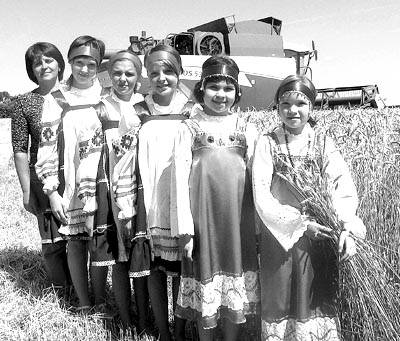 Дети пели и читали стихи, славили тружеников, вручили хлеб-соль на расшитом рушнике. Сценарий написала учитель Наталья Алексеевна Дыбля. Механизаторы и водители, участвующие в уборочной, от души благодарили ребят.