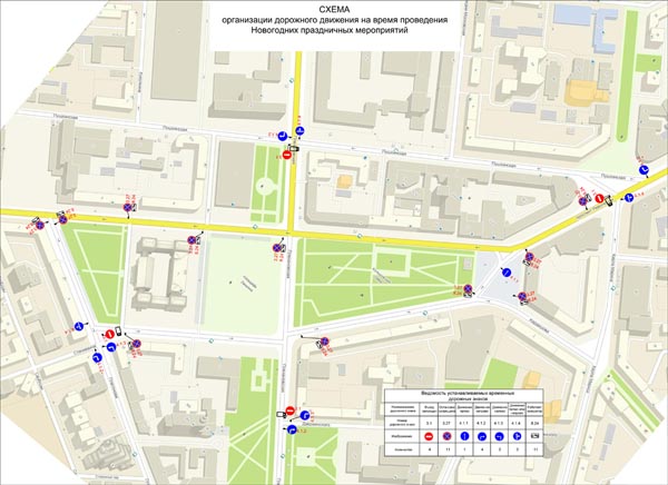Подготовлены схемы расстановки средств ограничения движения автотранспорта, а также ограждающих турникетов и рамок металлодетекторов на площади имени Ленина и прилегающей территории.