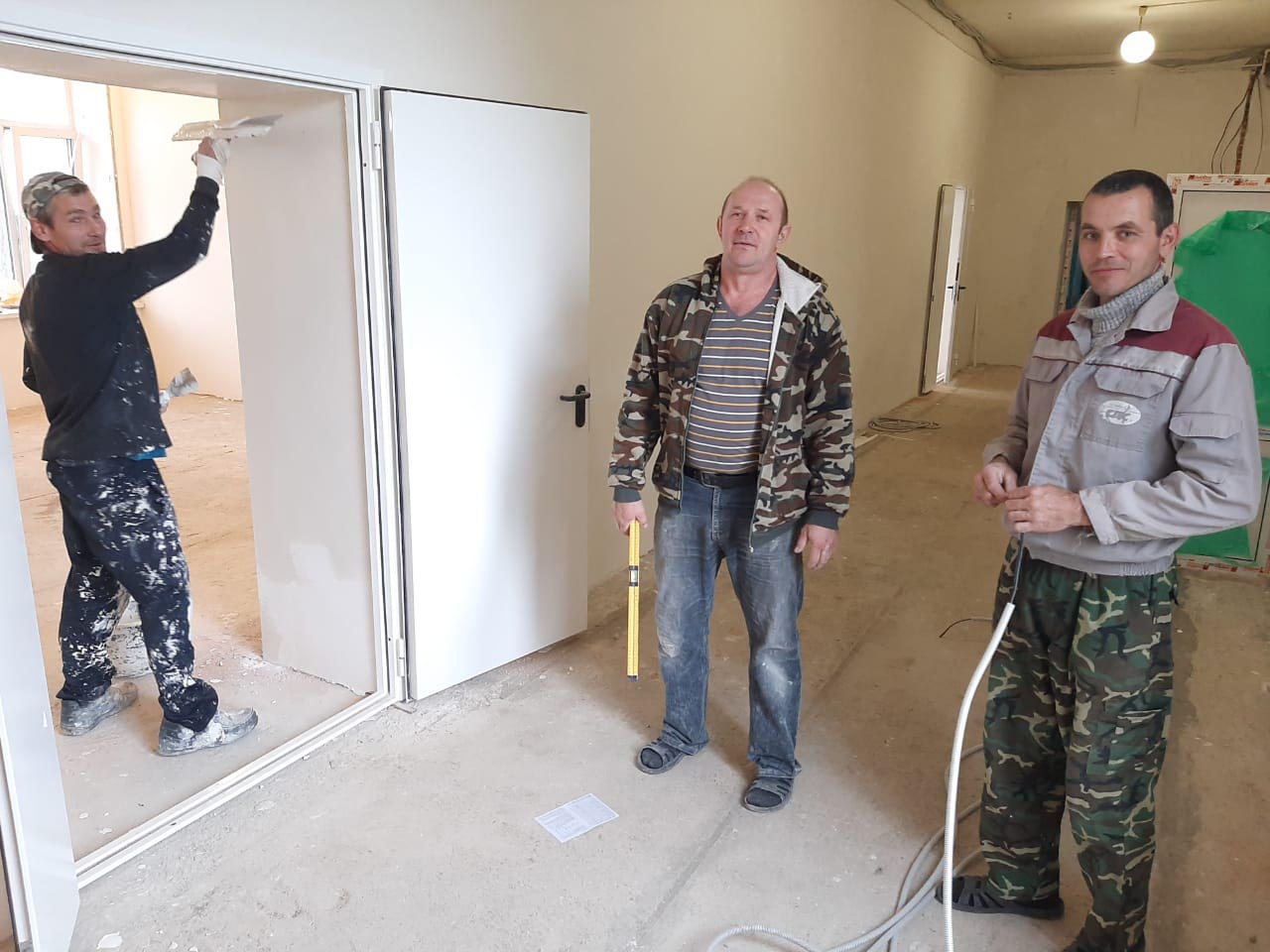 Строители заняты ремонтом в Руднянской школе.