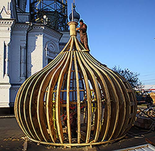 В настоящее время строители демонтировали четыре купола среднего яруса и на их место установили новые конструкции. В дальнейшем каркасы куполов покроют металлом и установят на место демонтированные кресты с растяжками.